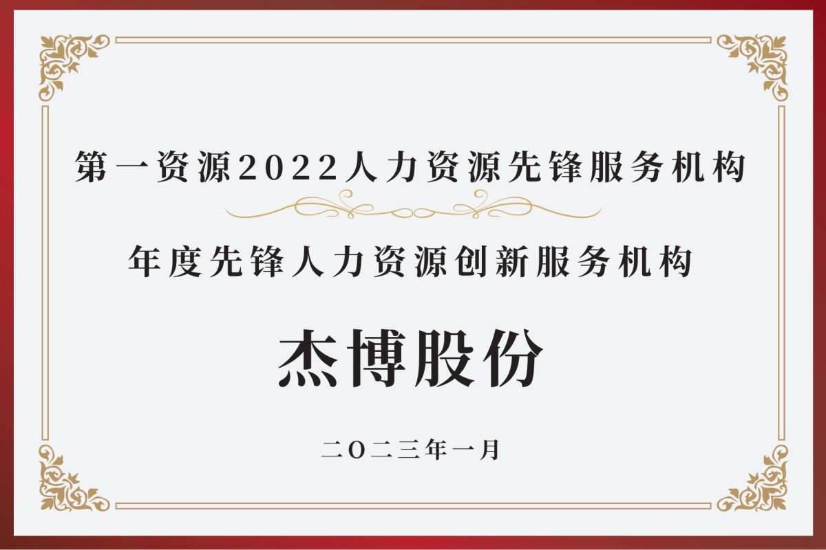 杰博股份,秉持“賦能產(chǎn)業(yè)、成就人才”的使命,致力于成為一家顧問(wèn)式、綜合性的人力資源服務(wù)機構。為客戶(hù)提供:高素質(zhì)干部隊伍服務(wù)(人才咨詢(xún)、人才測評、人才獵頭、人才培養、出海人才)、高水平創(chuàng )新型人才和企業(yè)家隊伍服務(wù)(企業(yè)家教練、科技人才獵頭、科技項目引進(jìn)、科技項目賦能、人才培訓、產(chǎn)教融合、退伍軍人就業(yè)賦能、隨軍家屬就業(yè)賦能)、高素質(zhì)勞動(dòng)者隊伍服務(wù)(靈活用工、出海人力、勞務(wù)派遣、招聘流程外包、業(yè)務(wù)外包、小杰閃查、技能培訓)以及增值服務(wù)(福利產(chǎn)品定制、“智能招聘”平臺、“業(yè)財一體化”平臺、政府產(chǎn)業(yè)發(fā)展服務(wù)、電力用戶(hù)效能提升服務(wù))等。 杰博股份,業(yè)務(wù)布局始終圍繞“成就所有人的JOB”這一愿景,以員工內在的素質(zhì)、技能提升和企業(yè)管理、科技水平提升為兩個(gè)路徑,高質(zhì)量服務(wù)人力資源市場(chǎng)供需兩個(gè)主體,為客戶(hù)創(chuàng )造更多價(jià)值,助力客戶(hù)業(yè)務(wù)的提升。 多年的砥礪前行,離不開(kāi)客戶(hù)的厚愛(ài)。在未來(lái)的發(fā)展歷程中,全體杰博人將秉執“簡(jiǎn)單 快樂(lè ) 言行一致 財富共享”的價(jià)值理念,為客戶(hù)提供全方位、多層次、更優(yōu)質(zhì)的人力資源服務(wù)解決方案,與客戶(hù)和人才攜手共進(jìn),共創(chuàng )輝煌!