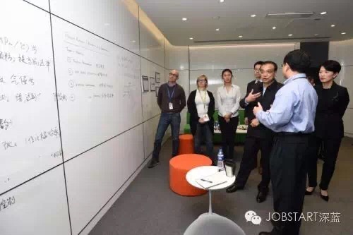 李克強總理21日考察上海自貿區內的GE中國科技園,這里匯聚了5000多名中外員工??偫砼c不同國籍的員工交談。